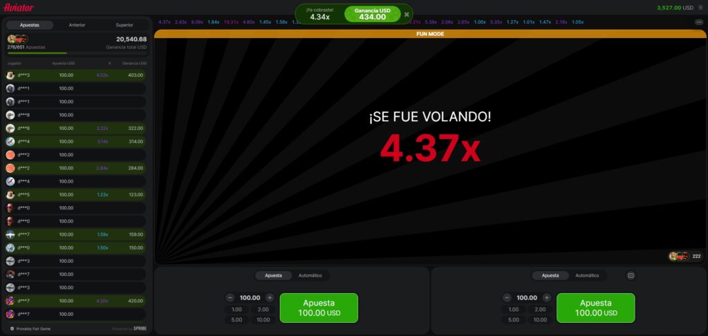 Aviator, diseñado por el proveedor de juegos Spribe, se distingue por sus mecánicas de juego sencillas y atractivas. En el juego de casino Aviator, los entusiastas se reúnen en una comunidad dinámica. Esta experiencia de juego ofrece una combinación única de emoción y compañerismo. Los jugadores pueden interactuar a través de un sistema de chat, participar en emocionantes torneos llamados “aviarace” y disfrutar de promociones como la “lluvia” de apuestas gratuitas. Spribe asegura una experiencia justa y dinámica, proporcionando estadísticas en tiempo real y una función de cobro automático, lo que mantiene el interés de los jugadores en todo momento. Utilizando Provably Fair technology, la transparencia y equidad del juego están garantizadas, generando confianza entre los jugadores.