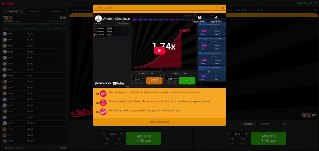 Para participar en el juego Aviator, primero debes colocar tu apuesta antes de que el avión despegue. Puedes ajustar tu apuesta entre un mínimo de $0.10 y un máximo de $100, dependiendo de tu estrategia y presupuesto. Es crucial utilizar de manera estratégica la opción de cobro anticipado para asegurar tus ganancias antes de que el avión desaparezca de la pantalla.